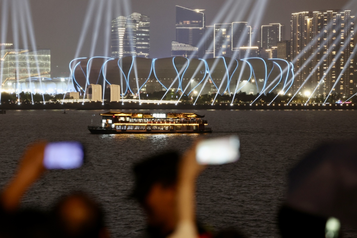 9月20日晚拍攝的杭州奧體中心燈光秀。中國日報記者 魏曉昊 攝