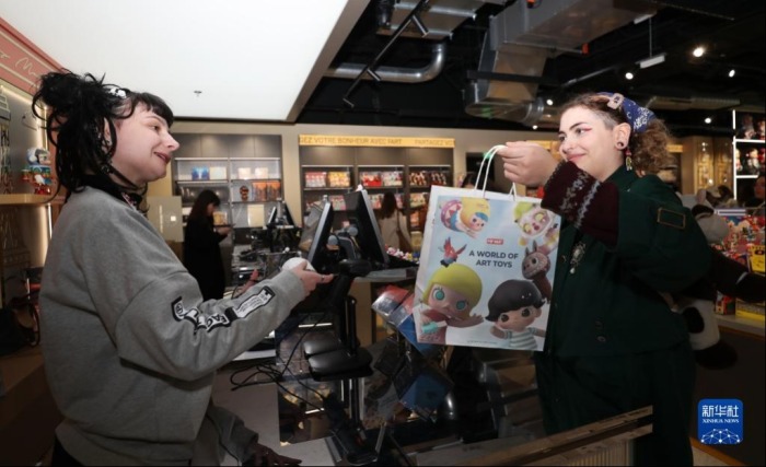 3月1日,顧客在位於法國巴黎市中心的泡泡瑪特門店選購。新華社記者 高靜 攝