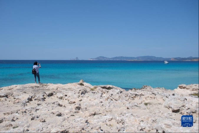 這是4月10日在西班牙巴利阿裏群島伊維薩島拍攝的雍加海灣風光。新華社記者 孟鼎博 攝