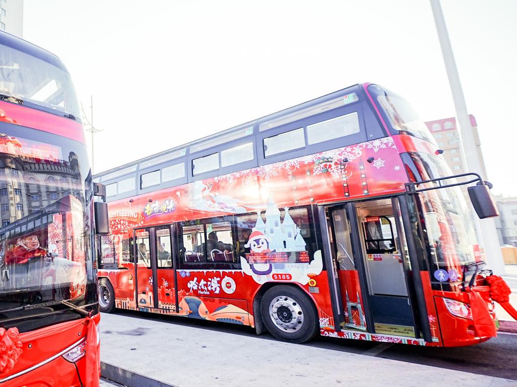 近日,雙層觀光巴士在哈爾濱“開跑”,沿途串聯起松花江觀光索道、中央大街、索菲亞廣場等地標。車站服務人員還參加了英語口語培訓,以便能與海外遊客順暢交流溝通。為助力哈爾濱冰雪旅遊發展,哈爾濱交通集團與春秋集團強強聯手,在2024年冬季正式成立哈爾濱春秋觀光巴士有限公司,將雙層巴士引入哈爾濱。