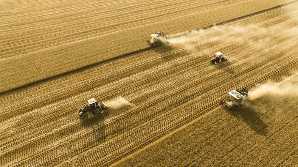 2025年6月4日,在河南省商丘市梁園區李莊鎮潘堂村志誠種植農民專業合作社,農機手操作機械在農田作業(無人機照片)。新華社發(李恒 攝)