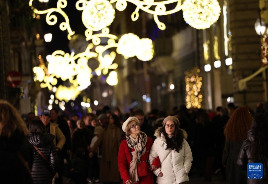 近日,意大利羅馬的主要地標建築和市中心街道點亮節日綵燈,為冬日增添繽紛色彩。