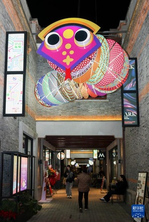 當日,位於上海市虹口區四川北路的“今潮8弄”開啟春節燈會,5組蛇年燈光藝術裝置點綴在弄堂老建築間,為市民遊客帶來傳統與現代交織的海派春節新體驗。