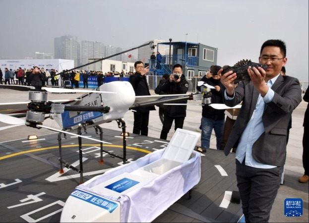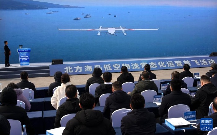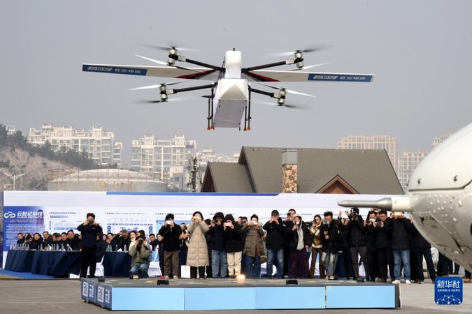 當日,青島首條海島低空物流航線開通,10分鐘內便實現了積米崖碼頭與靈山島之間18公里航程的陸島物資雙向運輸。據介紹,靈山島以往的物流運輸主要依靠船艇水運,霧大、浪高時經常性停航。低空物流航線的開通,拓展和豐富了當地低空經濟的應用場景,也給海島居民的生活帶來便利。