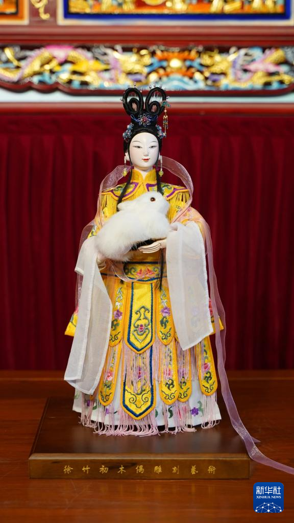 這是以嫦娥為原型製作的二十四節氣木偶中的“秋分”(2025年11月4日攝)。新華社發