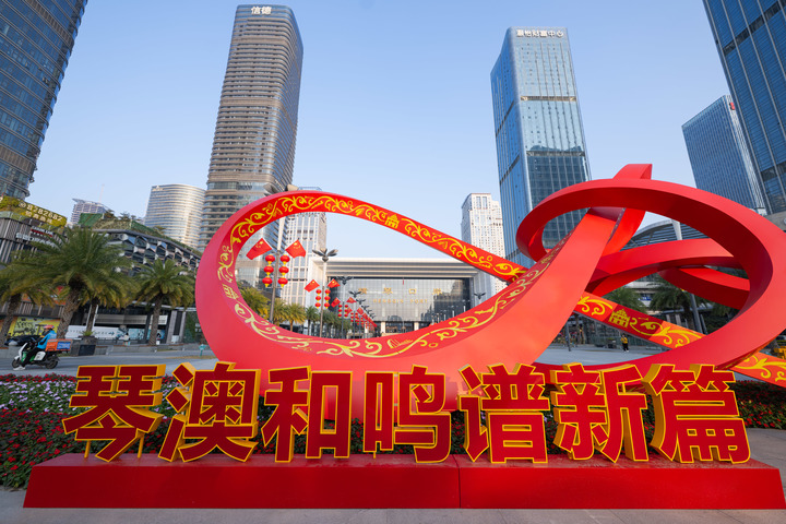 1月13日拍攝的橫琴口岸前的裝飾(新華社發)