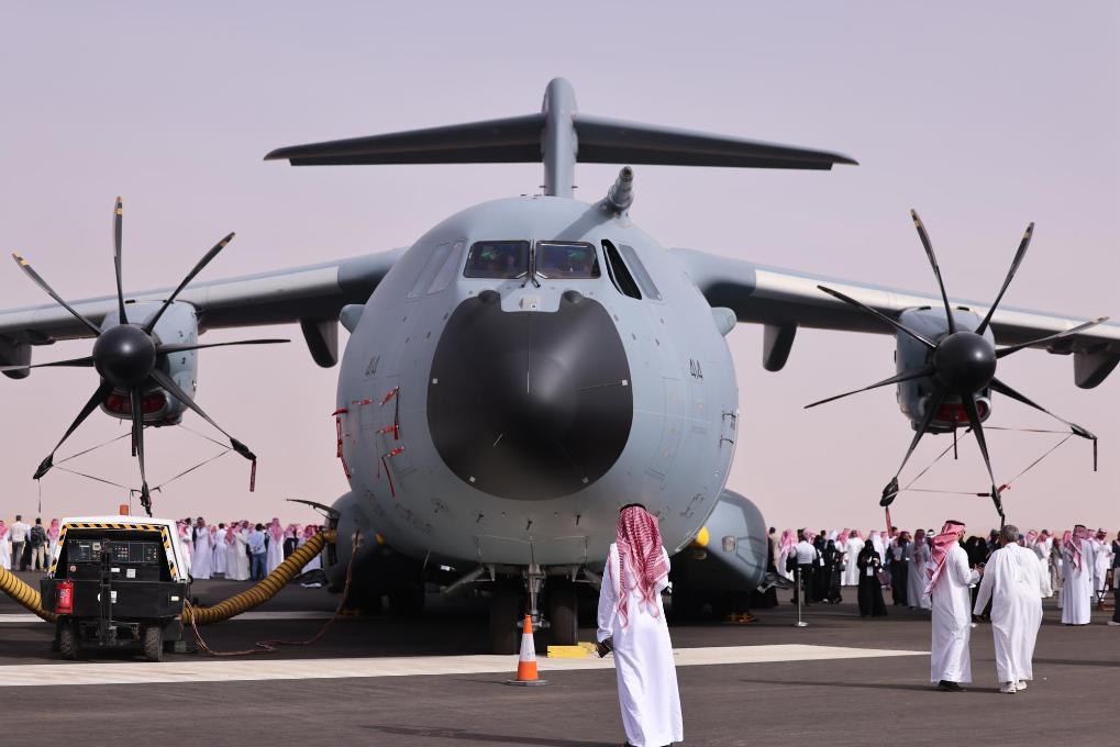 2月11日,在沙特阿拉伯利雅得舉行的第三屆沙特世界防務展上,觀眾在戶外展區參觀各類飛機。新華社記者王海洲攝