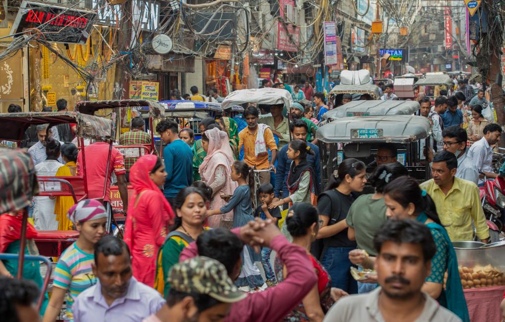 2023年4月26日,人們聚集在印度新德里的一處市場。新華社發(賈韋德·達爾攝)