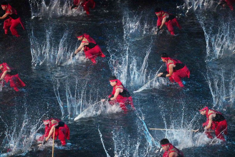 9日的羊城廣州,廣東奧體中心燈光璀璨,宛如飛揚的緞帶。場內,“同心圓”水舞臺波光粼粼,倒映萬家燈火。粵港澳大灣區面水而生、因水而興——這是一場以“水”為脈絡的全運會開幕式。