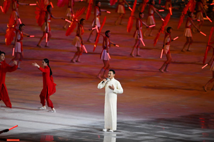 當《海闊天空》的旋律響起,觀眾席上的數萬人自發點亮手機燈光,齊聲合唱。象徵第十五屆全運會的15朵巨型木棉花升空,香港藝人劉德華領唱《中國人》,全場沸騰。